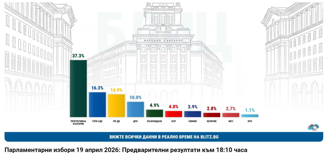 „Прогресивна България“ с близо 40% вот според екзит полове след приключване на изборния ден Партията на Румен Радев „Прогресивна България“ печели парламентарните избори с 37.5%, показват първите резултати от екзит половете на социологическа агенция „Алфа рисърч“ след края на изборния ден. Втори с много голямо изоставане след първия са ГЕРБ с 16.2%. На трето място [...]