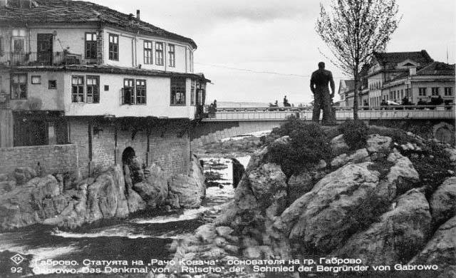 - Една от забележителностите на Габрово – „Паметник в реката“ – Рачо Ковача в празнична премяна
