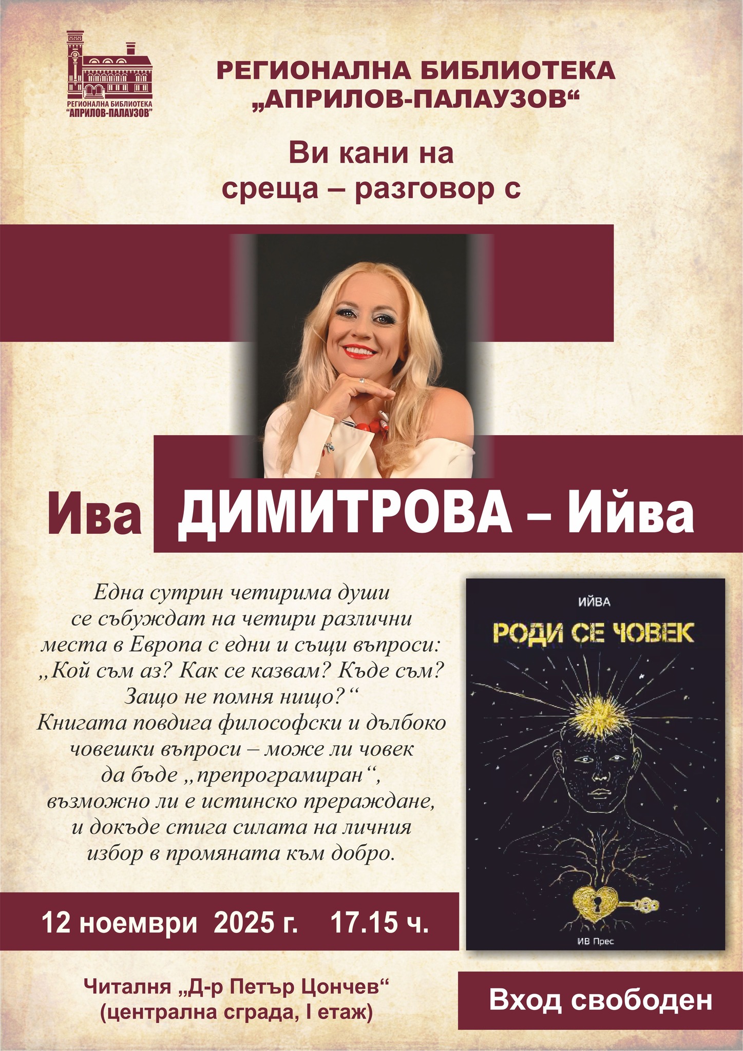 Броени дни след успешната премиера на четвъртия роман на Ийва – „Роди се човек“, писателката тръгва на ПЪТУВАЩО ЛИТЕРАТУРНО ЧЕТЕНЕ.