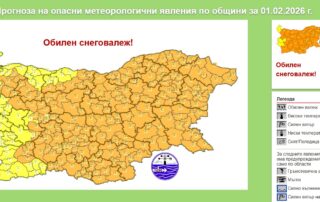 Оранжев код за снеговалежи в Област Габрово на 1 февруари Националният институт по метеорология и хидрология (НИМХ) към Българската академия на науките (БАН) издаде предупредителен оранжев код за значителни снеговалежи в Област Габрово. Прогнозата е валидна за 01.02.2026 г., за цялата Област Габрово, както и за значителна част от България. Очаква се в региона да паднат интензивни снеговалежи, които ще доведат до образуване на снежна покривка между 10 и 20 сантиметра. В планинските части условията ще бъдат още по-усложнени – предвиждат се виелици, силен вятър и снегонавявания, които могат значително да влошат видимостта и проходимостта на пътищата. Оранжевият код означава[...]
