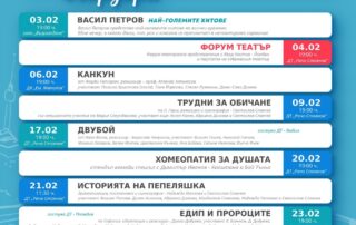 Февруари на театралната сцена на ДТ „Рачо Стоянов“ – Габрово През месец февруари Драматичен театър „Рачо Стоянов“ – Габрово предлага на своята публика богата и разнообразна програма, включваща театрални спектакли, гостуващи представления и музикални събития. Репертоарът обхваща класически и съвременни заглавия, комедия, драма и сценични експерименти. Акценти в програмата: 3 февруари, 19:00 ч., зала „Възраждане“Васил Петров – „Най-големите хитове“Концерт, в който Васил Петров представя емблематични песни от световната музикална сцена – вечер, изпълнена с джаз, поп и класика в изискана атмосфера. 4 февруари, 19:00 ч., ДТ „Рачо Стоянов“Форум театърТеатрално представление с участие на Явор Костов – Йондин и трупата на[...]