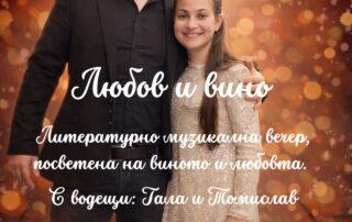 Поезия и музика ще отбележат празника на любовта и виното в Дряново За трета поредна година Томислав Линков и Община Дряново организират поетично-музикална вечер, посветена на празника на любовта и виното – 14 февруари. Събитието носи името „Любов и вино“ и ще се състои на 12 февруари от 18:00 часа в Ритуалната зала на Община Дряново. На сцената отново ще се изяви младата и талантлива Гала Савчева, която ще допринесе за празничното настроение и магията на вечерта. Организаторите канят всички жители и гости на Дряново да се присъединят към този празник на сетивата и духа. Организаторите обещават на публиката незабравима[...]