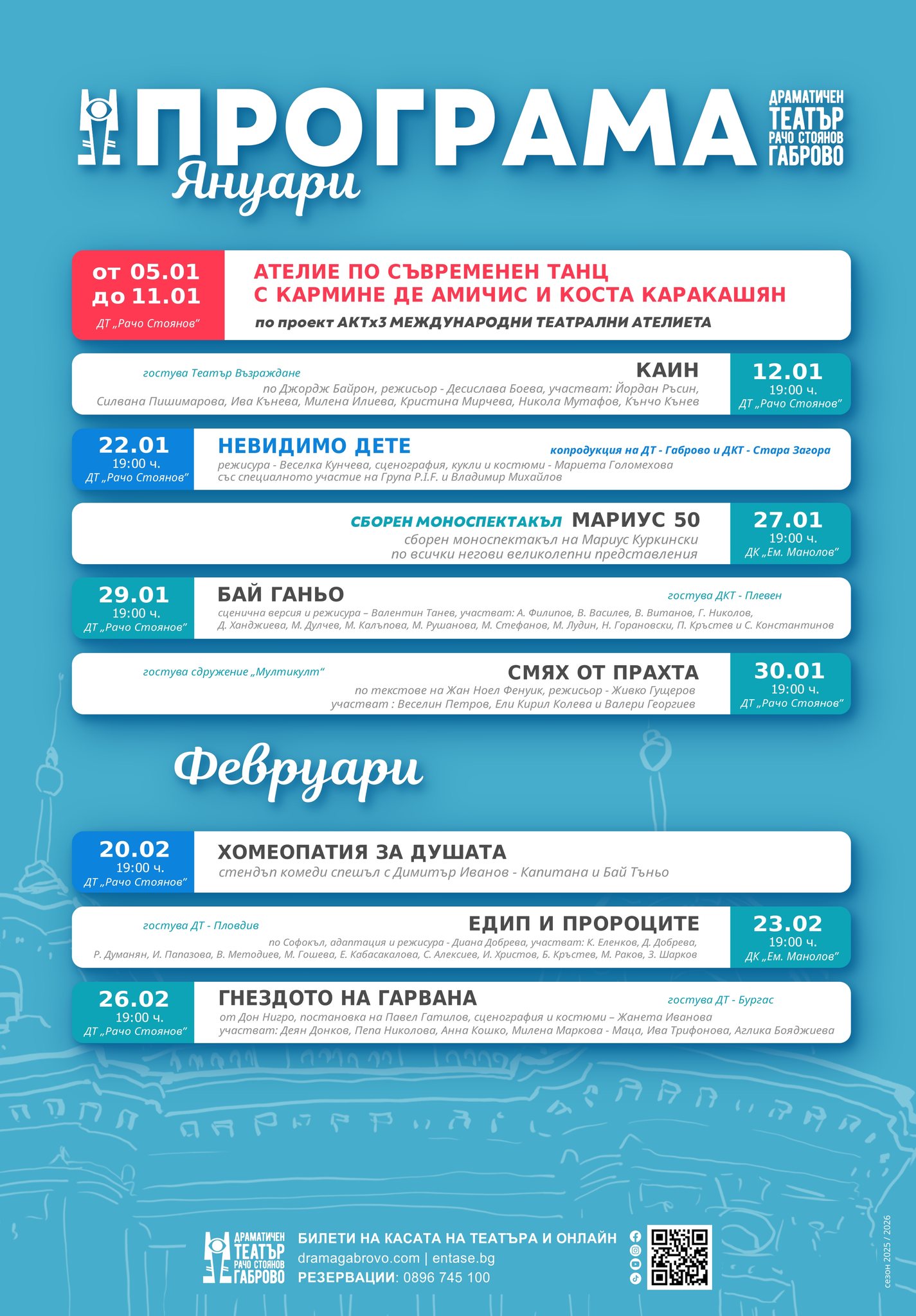 Януари идва с вълнуваща театрална програма в ДТ „Рачо Стоянов“ и цени в евро в полза на зрителите! С настъпването на януари ДТ „Рачо Стоянов“ кани своята публика на истински празник на театъра. Новият месец носи богата и разнообразна програма, изпълнена с любими заглавия и нови сценични преживявания, както и специални цени, създадени с мисъл [...]