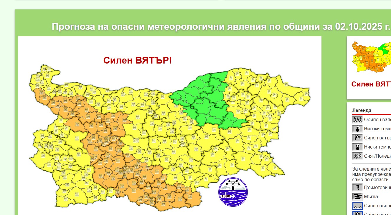 НИМХ предупреждава: Силен вятър, застудяване и вероятност за снеговалежи в планинските райони над 600-700 м. Жълт код за силен вятър е издаден за четвъртък, 02 октомври. Значителни валежи от дъжд (до 30-35 mm), които в планинските райони ще преминават в сняг. Със застудяването границата на снеговалежите ще се понижава. Ще духа силен североизточен вятър. В [...]