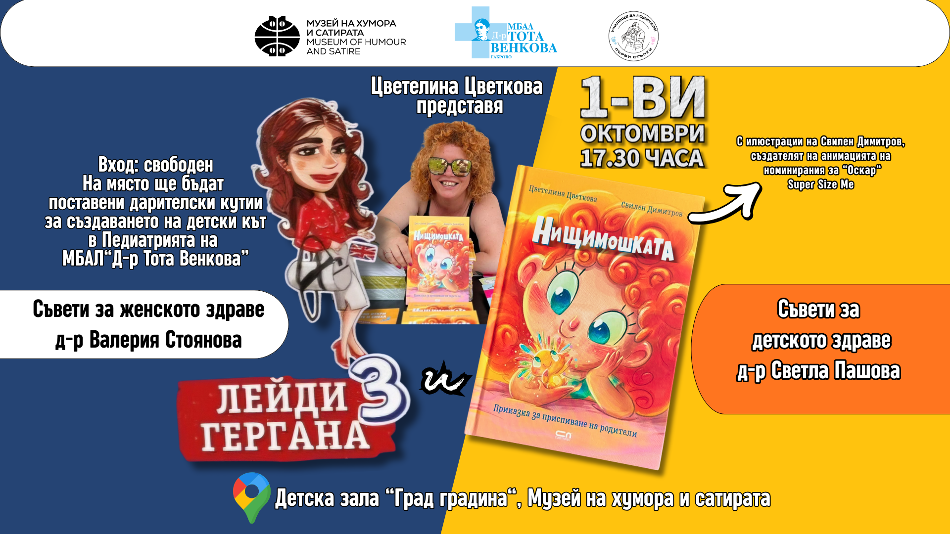 Северозападният хумор идва на гости в Музея на хумора и сатирата в Габрово на 1 октомври от 17.30 часа Любимата на малки и големи Цветелина Цветкова ще пристигне, за да представи книгата си за деца- „Нищимошката“ с илюстрации на Свилен Димитров, създател на анимацията на номинирания за “Оскар“ Super Size Me. Няма да [...]