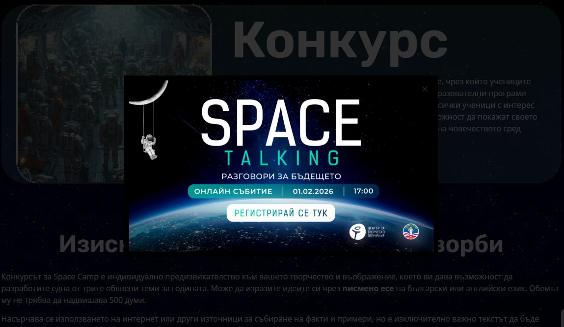 Пътят към Космоса започва с есе: възможност за ученици от цялата страна Центърът за творческо обучение обявява национален конкурс за есе, чрез който ученици от 5, 6 и 7-ми клас с интерес към науката, технологиите и Космоса могат да кандидатстват за участие в престижните космически образователни програми на Space Camp Türkiye 2026. Конкурсът дава шанс [...]