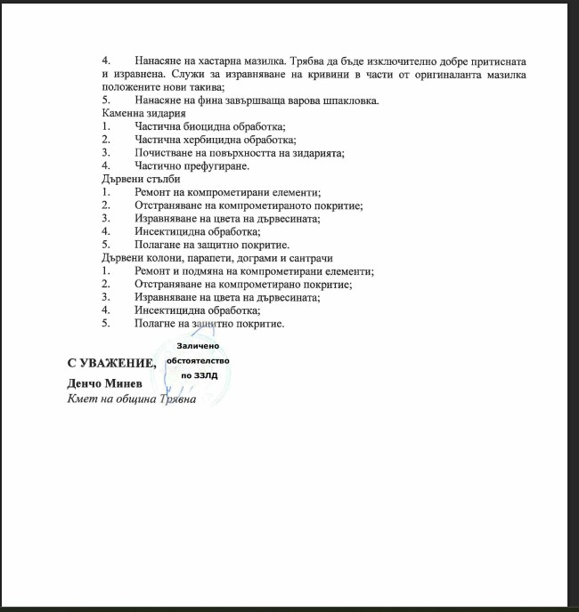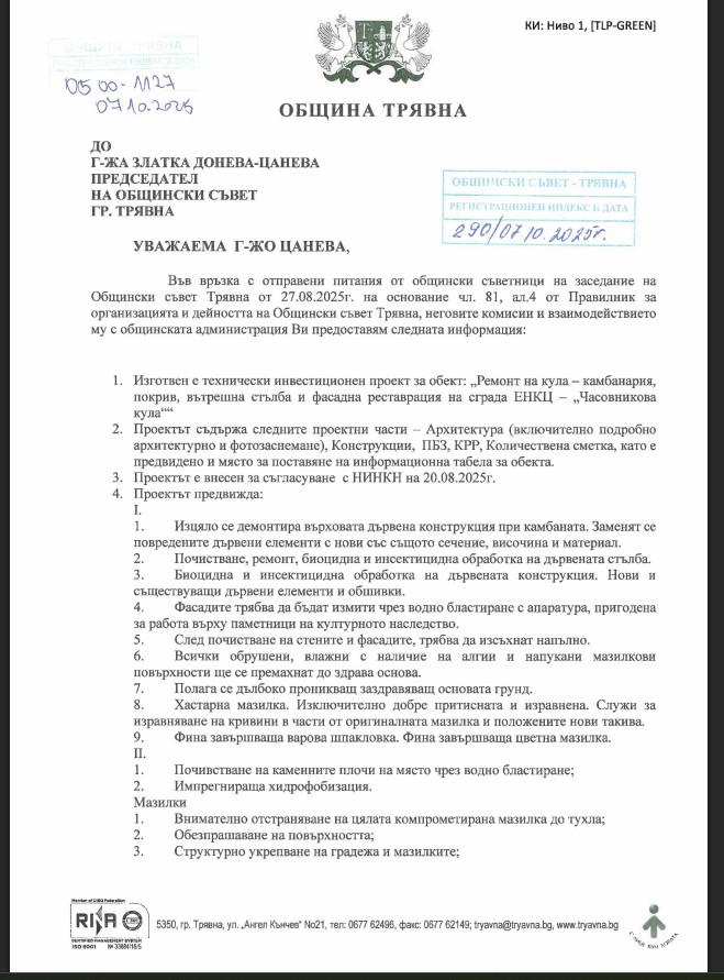 Това става ясно от отговор на Кмета на Община Трявна, Денчо Минев, към запитване, отправено от Боян Грозев, Общински съветник – Обшина Трявна.