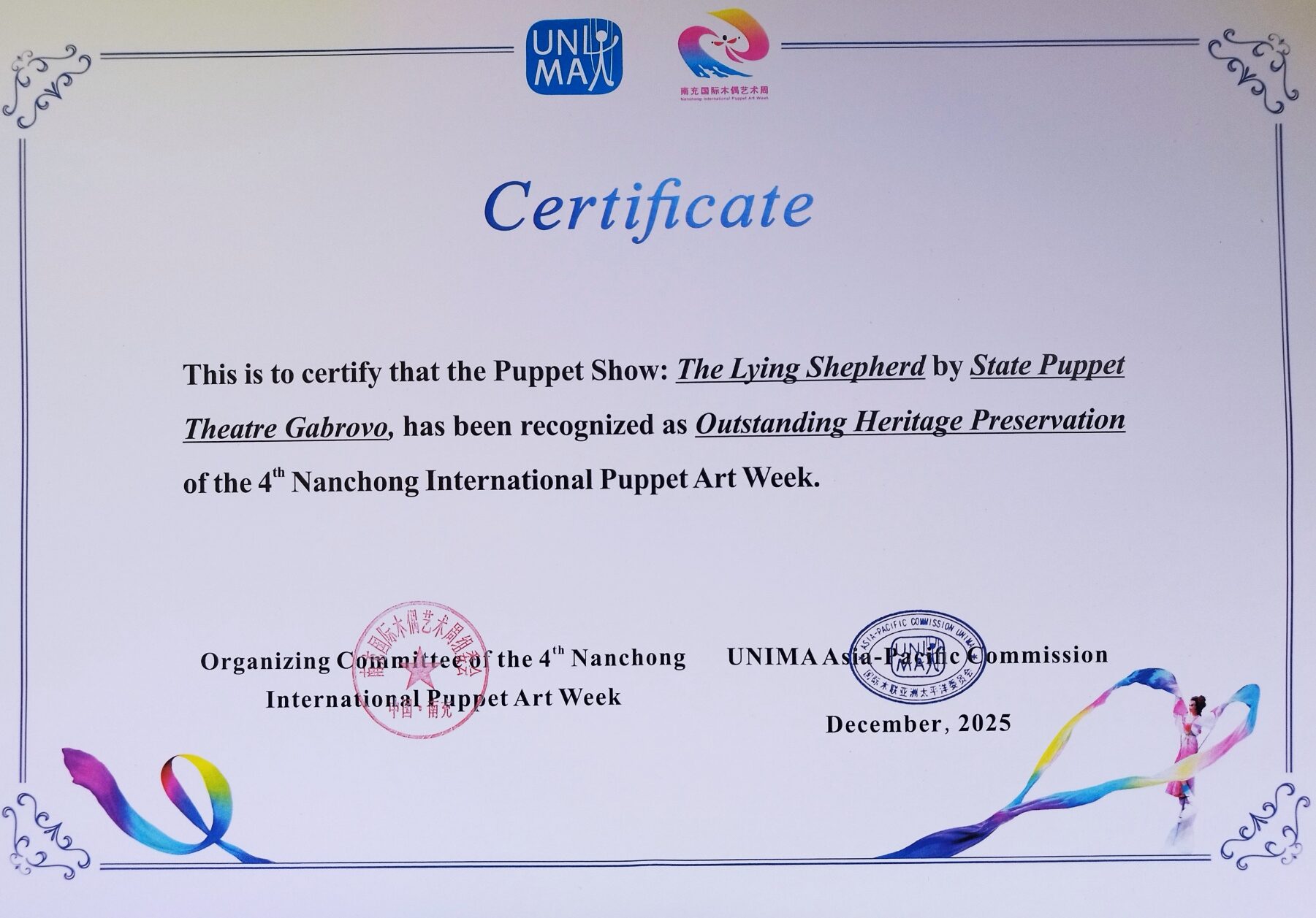 Държавен куклен театър – Габрово взе участие в 4-тата Международна седмица на кукленото изкуство в Нанчонг, Съчуан, Реплика Китай от 2 до 8 декември на 2025 г.