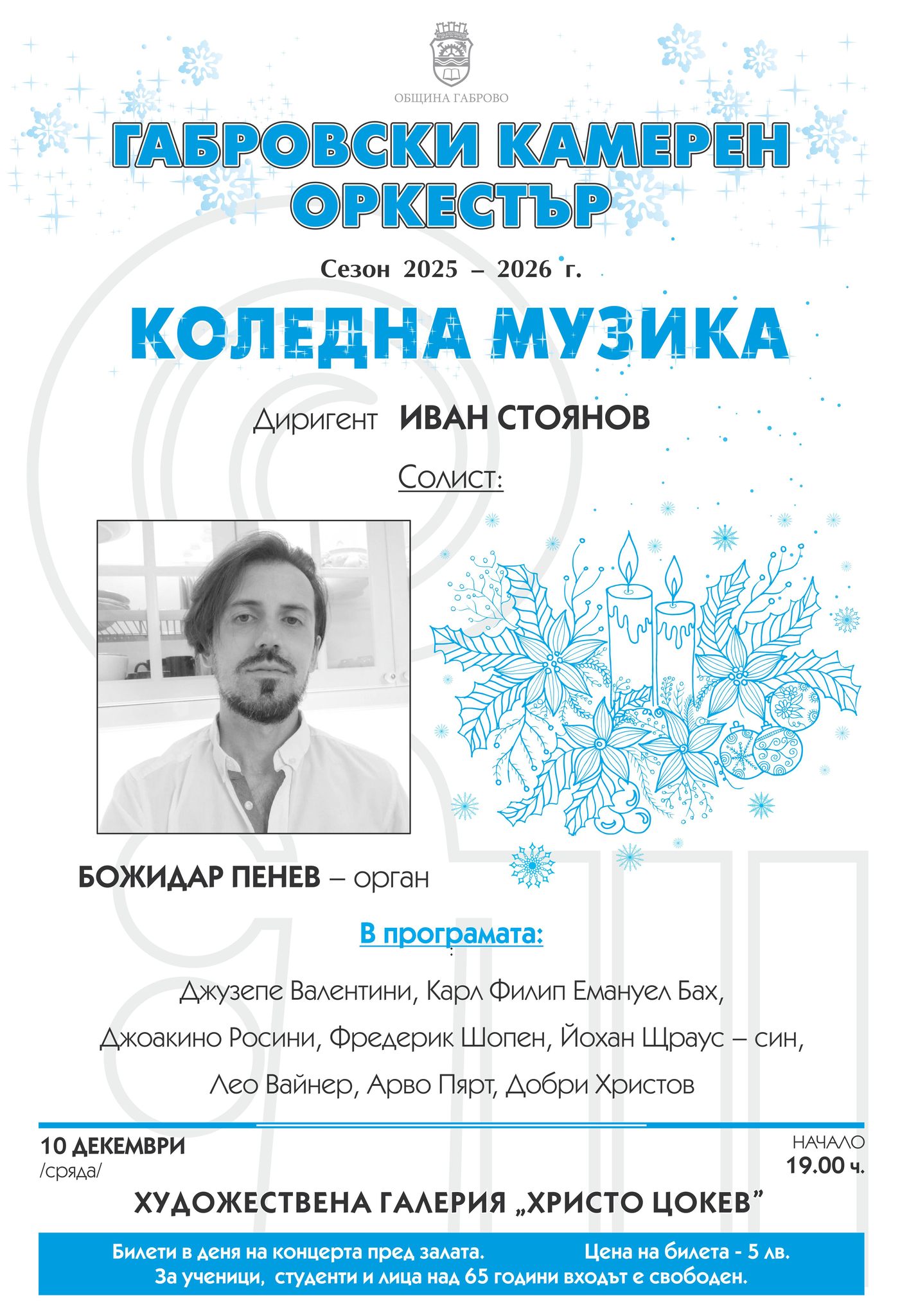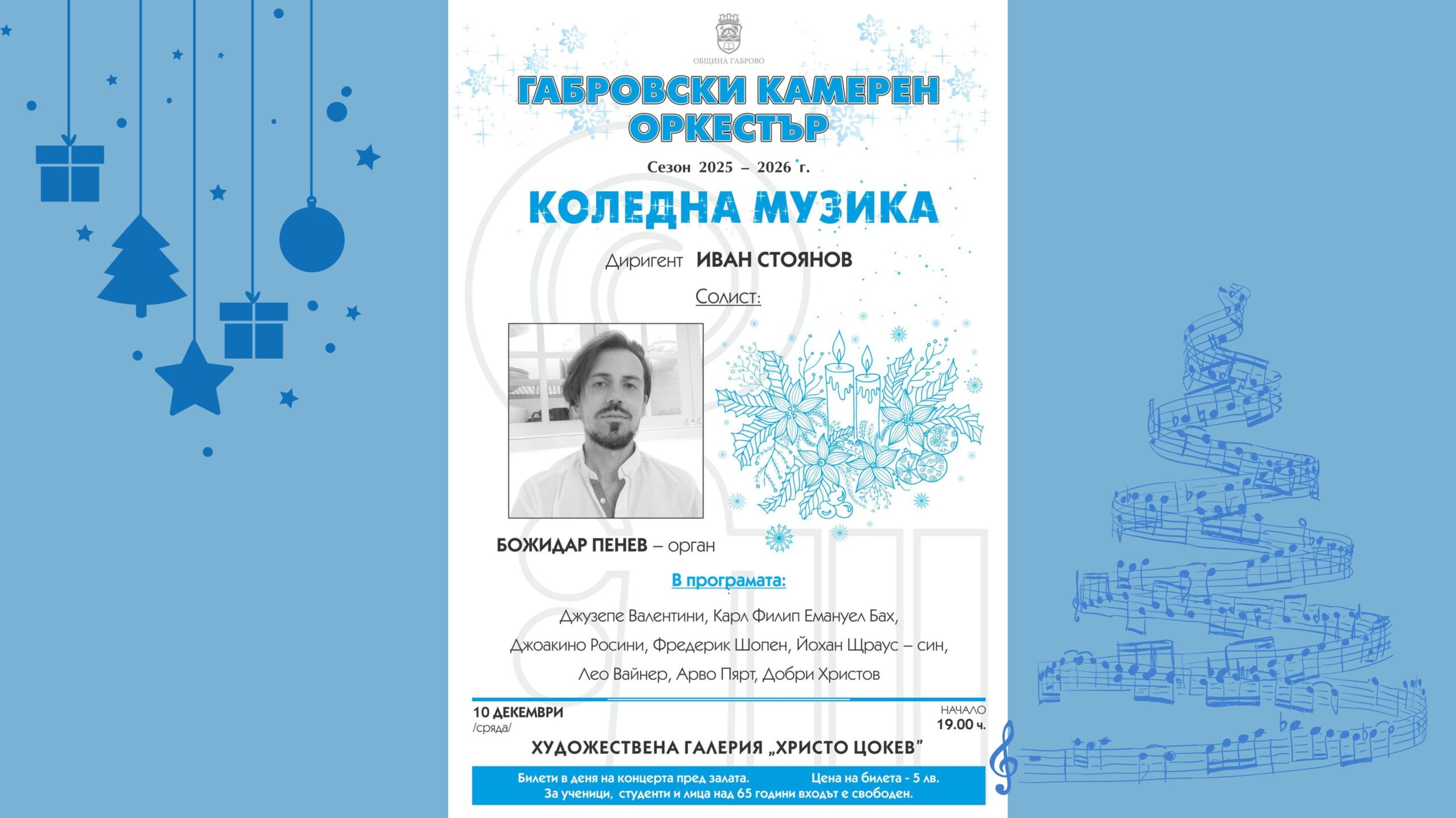 Коледна музика с Габровски камерен оркестър – празничен концерт на 10 декември