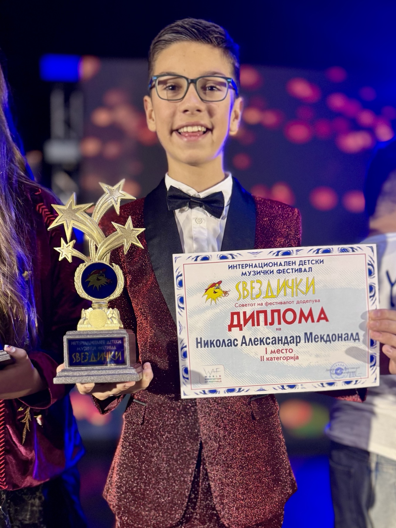 Скоро след това той се завърна от Международния детски музикален фестивал „Звездички“, който се проведе в гр. Битоля, Република Северна Македония и бе организиран от Световната асоциация на фестивалите.
