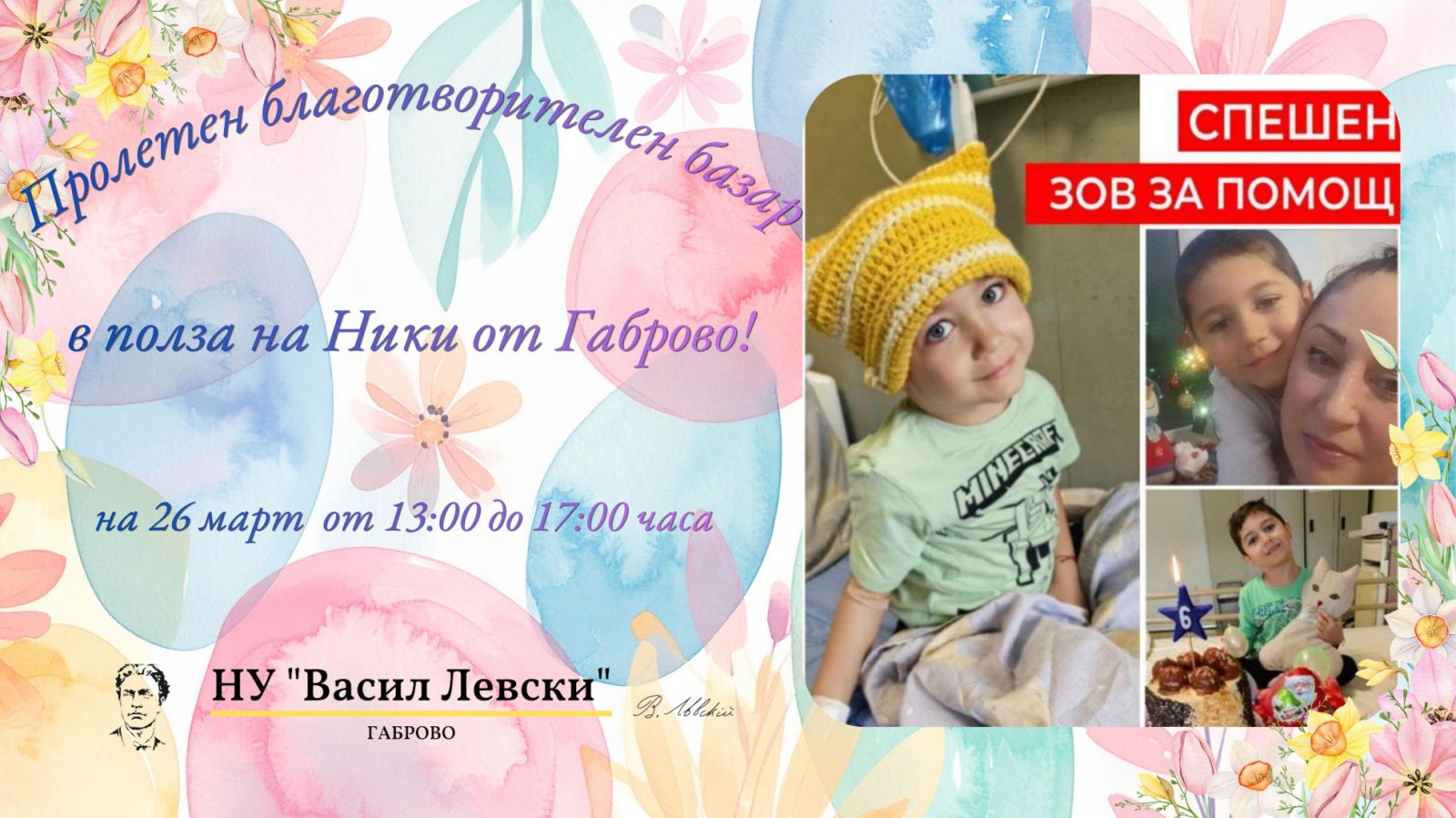 НУ „Васил Левски“ организира пролетен благотворителен базар в подкрепа на малкия Ники
