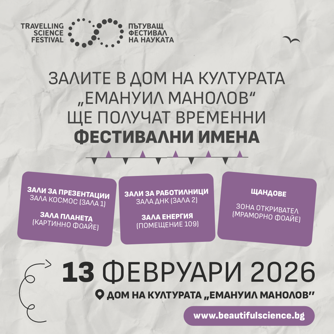 От минерали с планетарен произход на Земята и ледниците на Антарктика до космически технологии. От лъжите в географските карти до истините за вируси в променящия се климат. От науката за динозаврите до технологиите и храните на утрешния ден. В петък, 13 февруари 2026 г., в Дома на културата „Емануил Манолов“ Фондация „Красива наука“ и Община Габрово организират еднодневен празник на науката и технологиите с участието на изследователи и инженери от региона и страната.
