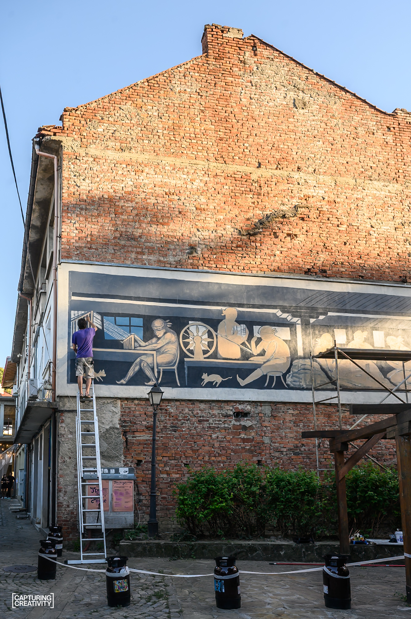 И още нещо важно за мен в Габрово: в рамките на Микрофест •Три за щастие• реализирахме стенописа „Метаморфоза“ на Кром Багелски – визуален разказ за женския труд и габровската предприемчивост, стъпил върху историята на копринарството в кв. Шести участък. За мен този проект е пример как съвременното изкуство може да връща видимост на местната памет и да я превежда на език, който остава в града.