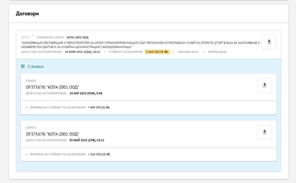 - Ремонтните дейности приключиха на през 2024 г., като един от последните ремонти бе свързан именно с ремонта на находящия се в самия РЕМО Етър Хотел, а обществената поръчка само за този хотел бе надписана на два пъти, като общата сума набъбна от 2 729 317,12 лв без ДДС, каквато бе първоначалната оферта на фирма КОТА-2001 ООД на общо 3 363 307,78 лв. без ДДС, или това бе увеличение с над 23% само за тази обществена поръчка!