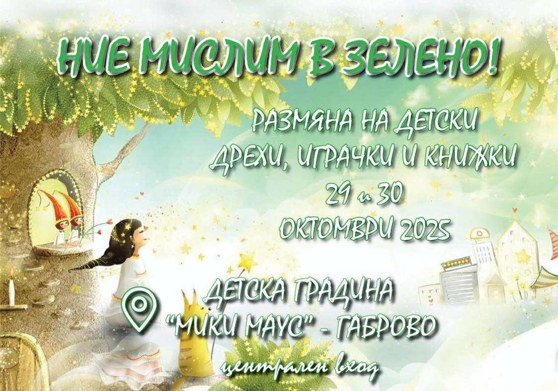• „Ние мислим в зелено“ – ДГ”Мики Маус” с покана към габровци Децата растат бързо, но дрешките им могат да стоплят и зарадват още някого! Скъпи родители, Каним ви да се включите в кампанията на ДГ”Мики Маус” – „Ние мислим в зелено“, на 29.10. и 30.10.! Можете да донесете чисти и запазени дрешки, книжки и играчки [...]