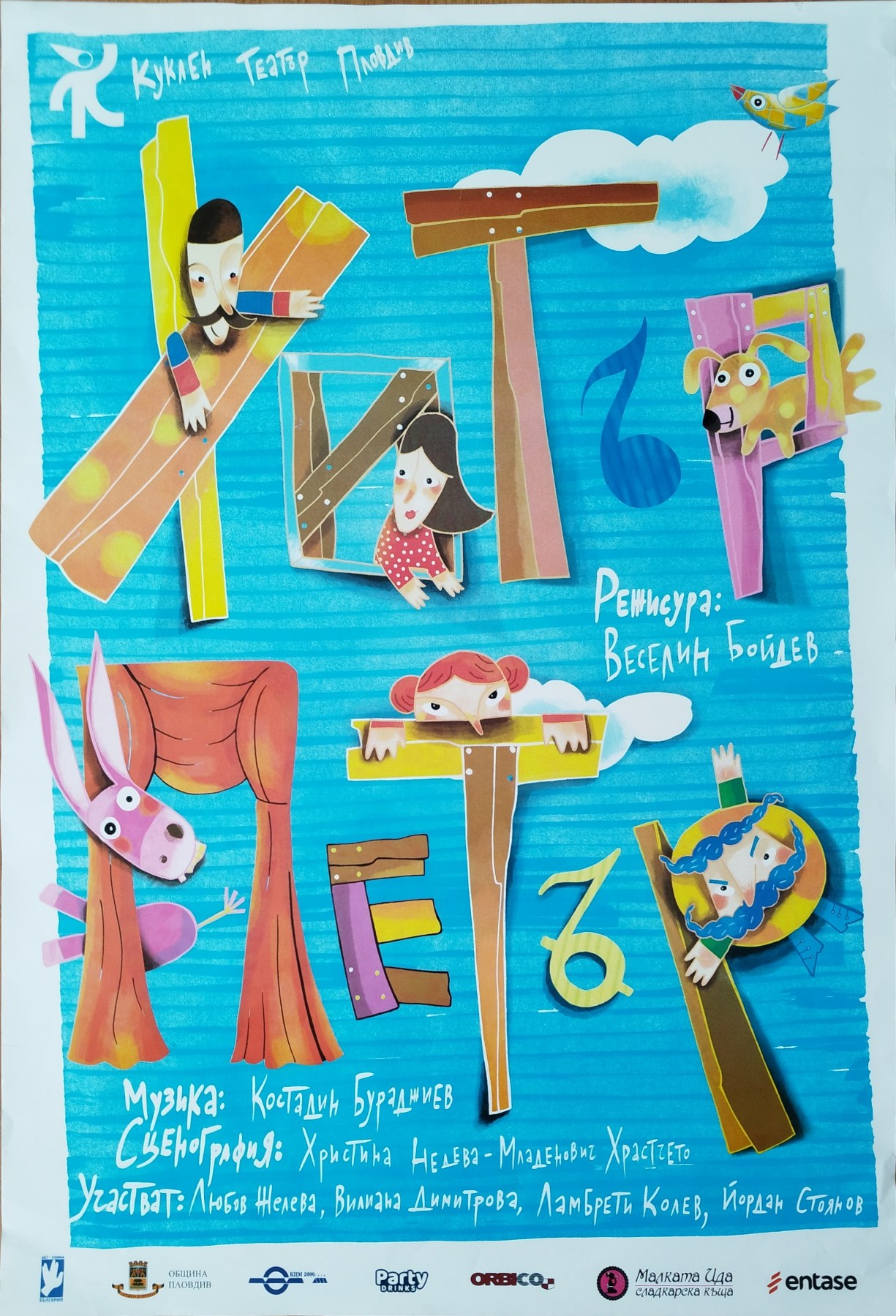 Забавните истории на Хитър Петър, дело на българския фолклор и народния хумор от поколения ни веселят, но и ни поучават кое е правда и кое е кривда. Веселата история режисирана от добре познатият режисьор – Веселин Бойдев въвежда в шеметно представление, изпълнено с атмосфера на панаир, цирк и клоунада. Щури музиканти разказват и забавляват заедно с куклените герои от сцената своите зрители. Публиката ще се срещне с най-артистичното магаре и игривият Шарко, алчният Ганьо и още по-алчната Ганьовица, работливата Мара и още и още познати лица и имена. Ритмичната музика на проф. д-р Костадин Бураджиев, кара зрителя да потропва с краче всеки път щом зазвучи.