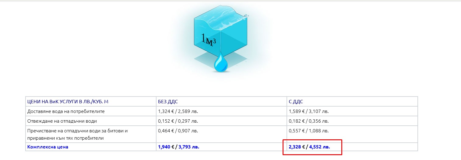 Комплексната цена на кубик се увеличава с 8.4% и става 2.52 евро с ДДС / куб.м. за битовите потребители, считано от 01.03.2026 г.
