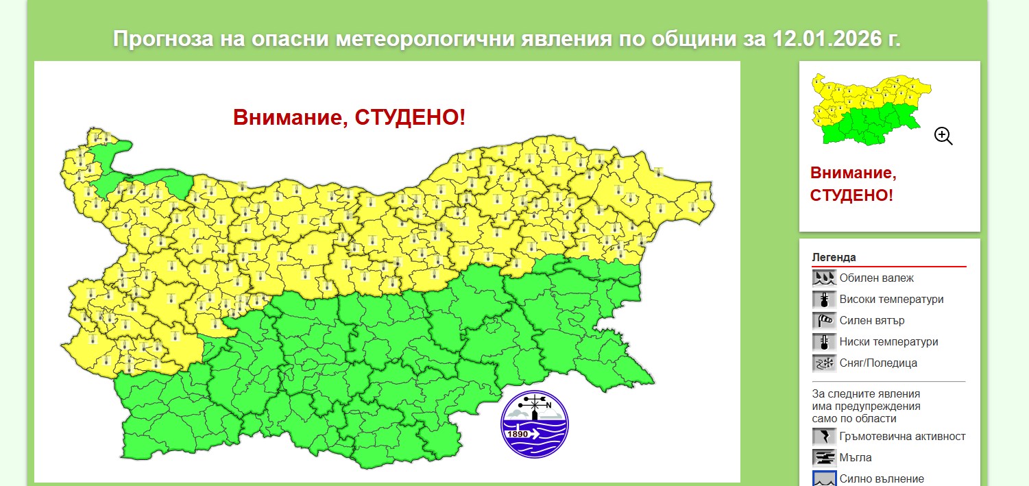 Жълт код за студено време – очакват ни най-ниските темпратури до тук от зима 2025/2026